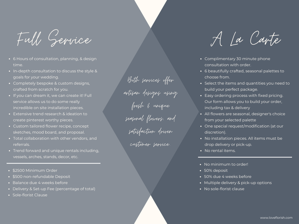 We recently launched our A La Carte package, after many months of research, recipe building, and design creation. This service has been over a year in the making (if you count the many months it spent growing in my head). It's a result of our desire to work with clients who have smaller budgets, but still want artisan floral designs for their wedding or elopement.